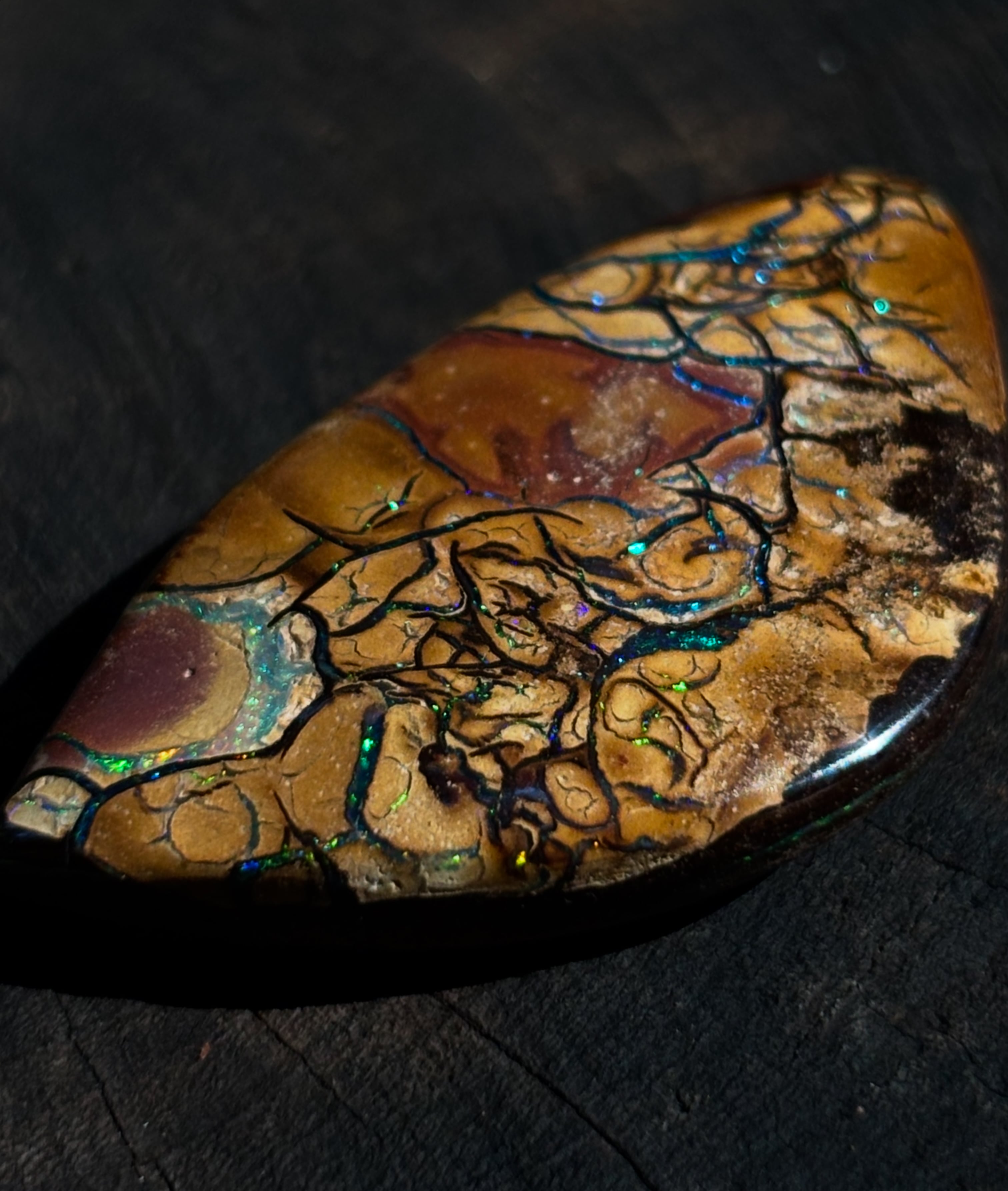全体にマトリックス模様が広がる個性豊かなボルダーオパール。